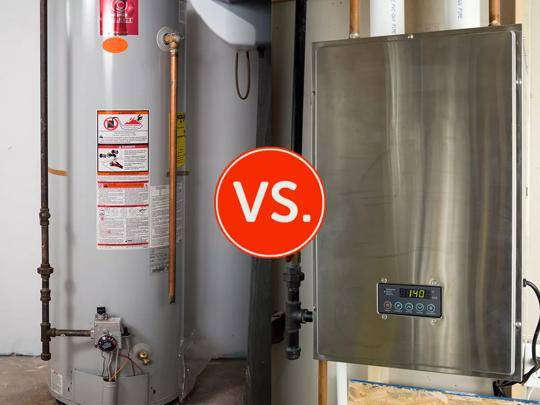 A side-by-side comparison of a tankless vs. tank commercial water heater. Tankless models provide on-demand heating with energy savings, while tank water heaters store hot water for consistent supply. Piping Pro Plumbing offers expert guidance on selecting the best commercial water heater for your business in Madison, WI, and surrounding areas.